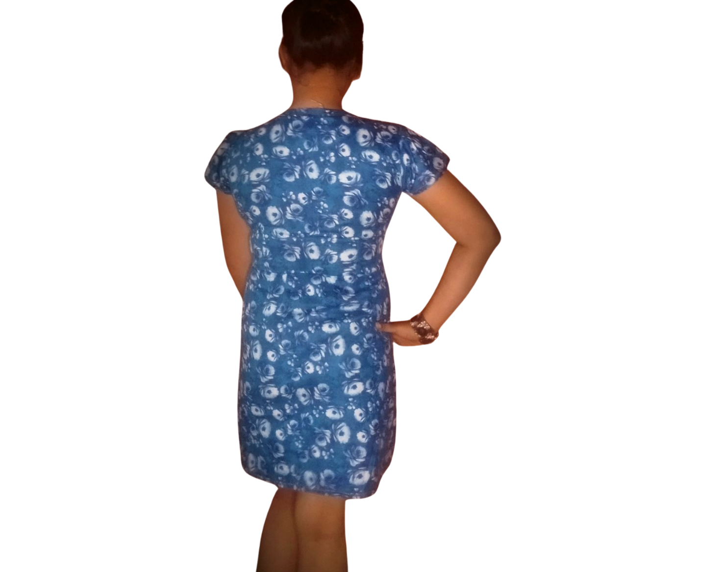 Ikshita- the visible one! Enjoy full visibility with this vibrant midi floral dress. It is made with cotton fabric and has a round neck and short sleeves