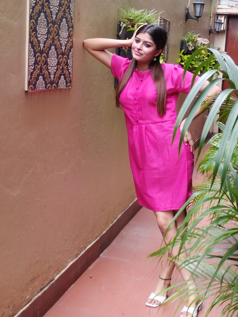 Anya- full of grace! Look graceful on this pretty hot pink mini dress, made with cotton blend fabric and has buttons till waistline