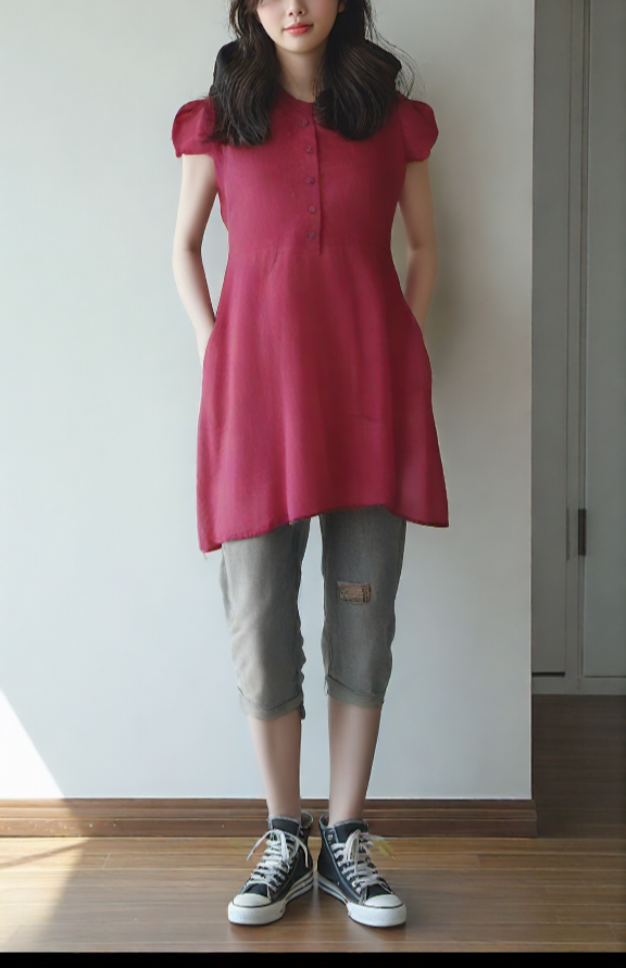 Myra- admirable! Look admirable in this classy shirt style dress, has black lace border on hem and a pocket attached