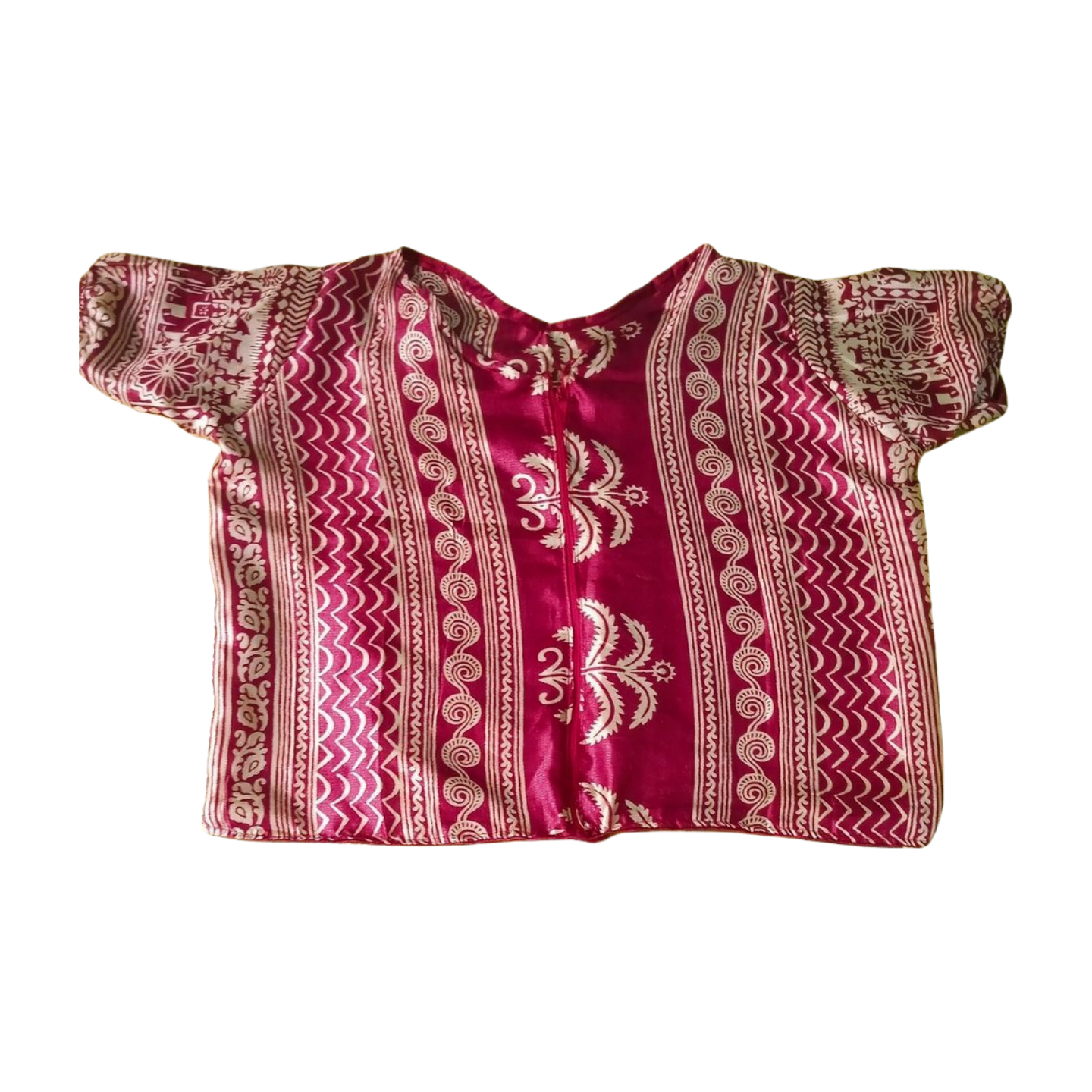 Look stylish in this unique shacket with puff sleeves and found neck, made with art silk fabric
